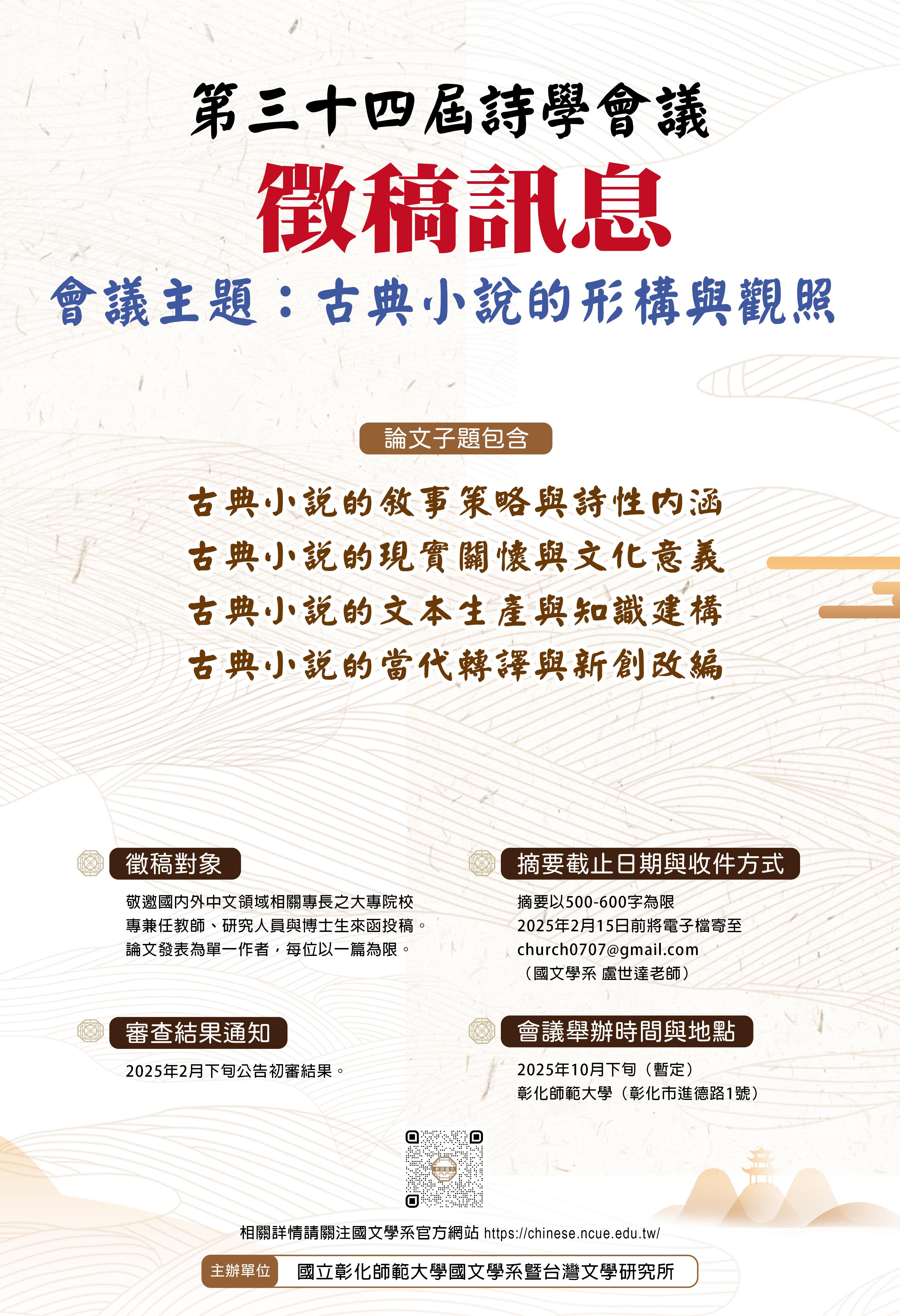 第三十四屆詩學會議「古典小說的形構與觀照」國際學術研討會