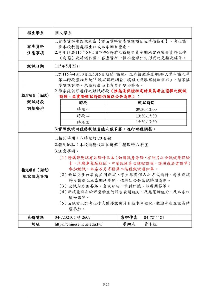 【招生組公告】公告本校115學年度大學申請入學第一階段篩選結果暨本校大學申請入學第二階段指定項目甄試「考生須知」
